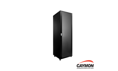 Caymon Rack Cabinet. 12 unit cabinet. Ventilation grid on top. Removable sides for easy installing & cabling. Tempered glass door with keylock.