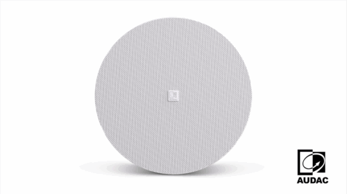 100 V line transformer ceiling speaker with a Maximum power of 20W, stable & worm-gear ceiling brackets and protection against dust and water with an IP-44 rating.