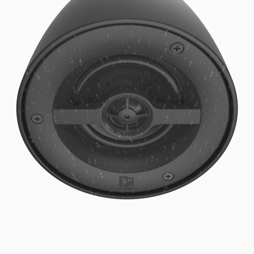 The wide opening angle of the speaker guarantees an exceptional dispersion in all different kinds of applications and locations with high ceilings and large open spaces. The carefully matched components and construction guarantee optimal coverage over the entire frequency range.