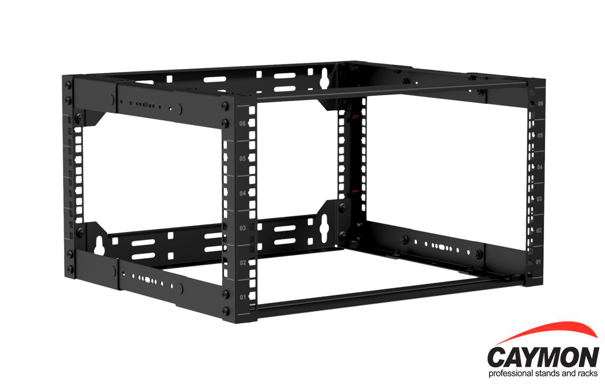 Caymon 19″ in depth adjustable open frame rack – 6 unit – 300 ~ 450mm