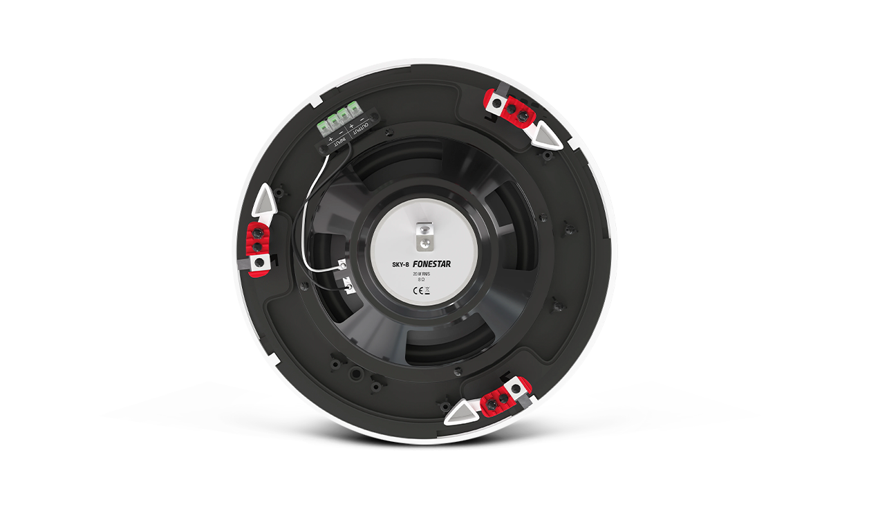 The SKY-8 is a low impedance ceiling loudspeaker designed for high quality sound and functional design. Its frameless, low-profile grille, made of rust-resistant aluminium, provides a modern, unobtrusive aesthetic, ideal for any space. In addition, it can be customised thanks to its removable, paintable design without visible logo.