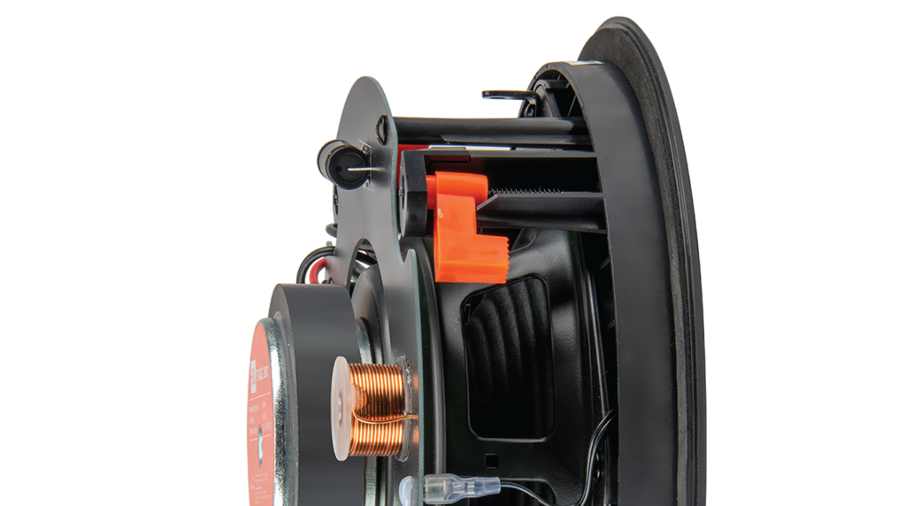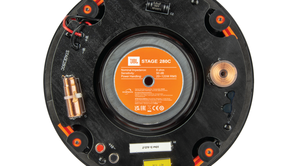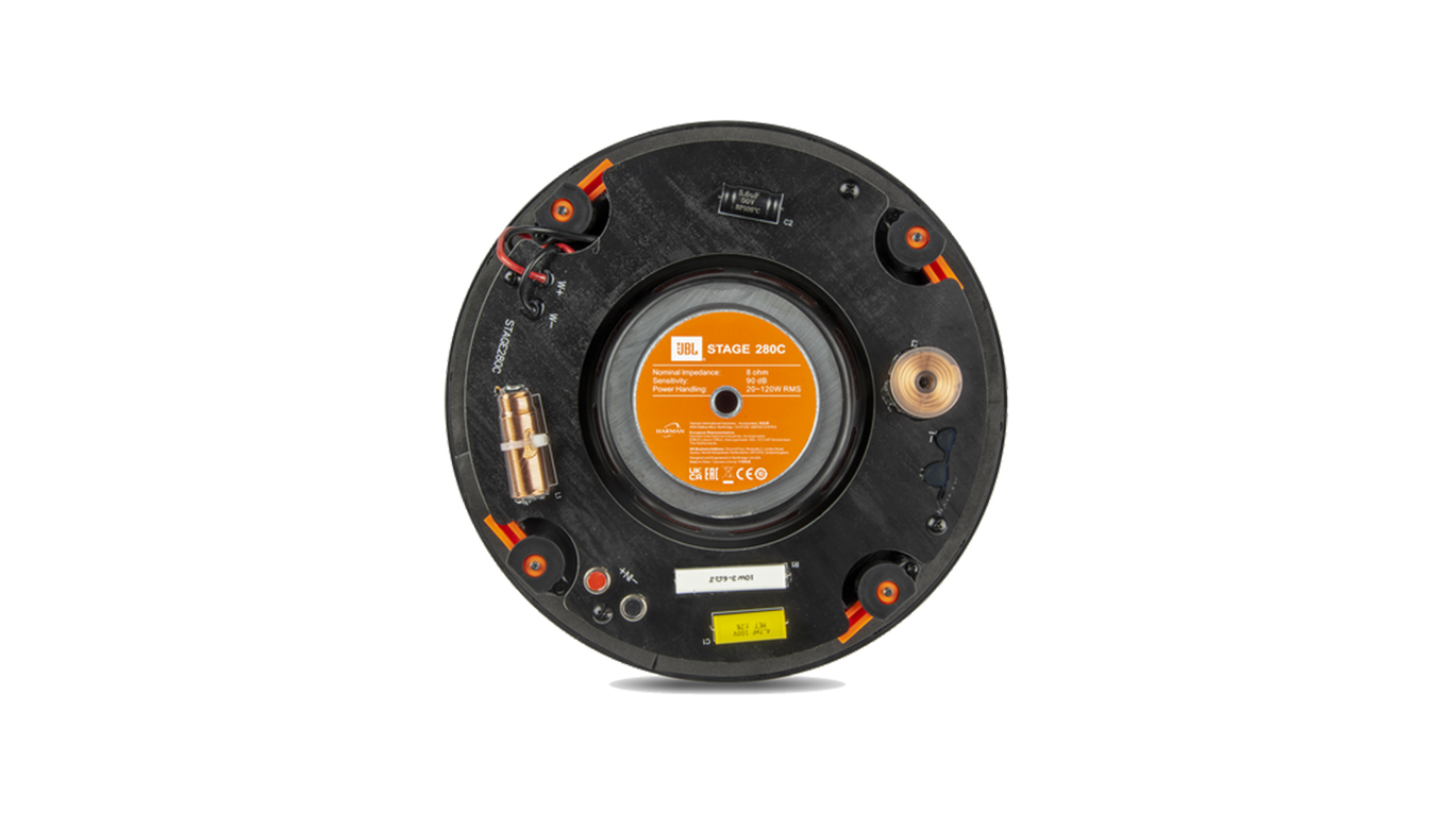 The Stage 280C has an 8″ (200mm) Polycellulose cone woofer and 1″ (25mm) Aluminum dome tweeter with an acoustic lens waveguide.