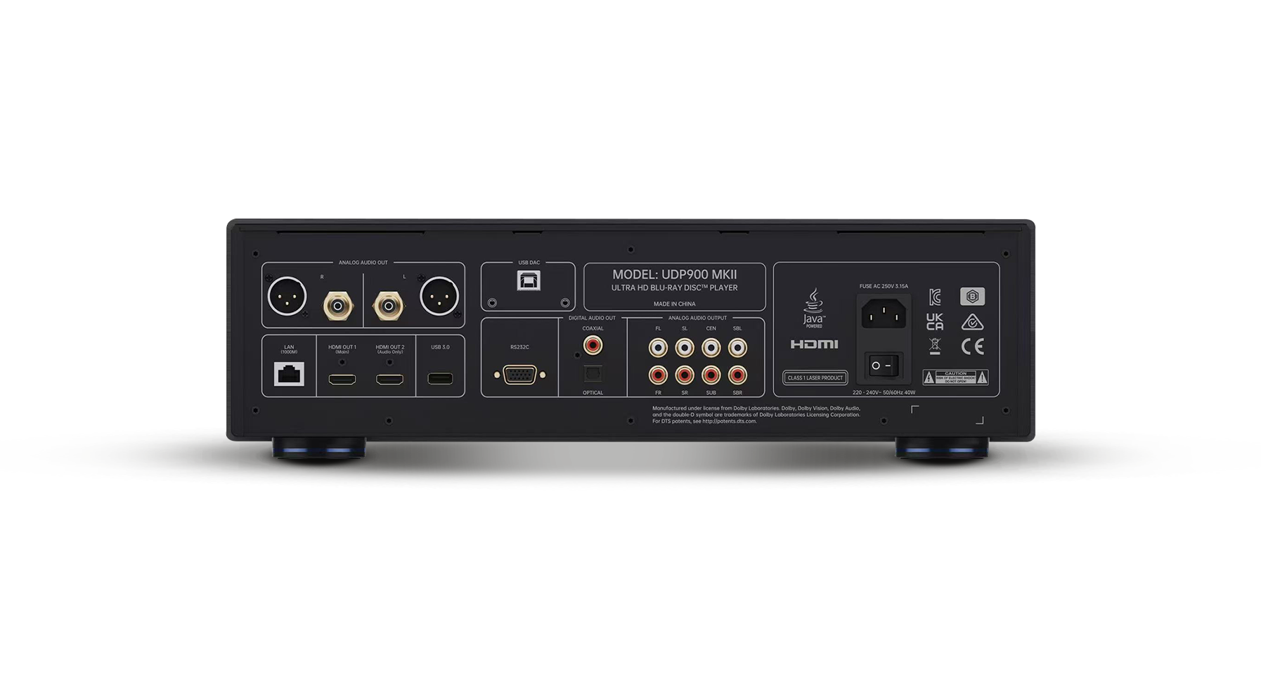 Flagship universal 4K Ultra HD Blu-ray player with reference-grade audio and video performance. Plays UHD Blu-ray, Blu-ray (incl. 3D), DVD, SACD, CD and major media formats. Advanced audio with dual ESS9038PRO DACs, XMOS USB audio up to PCM768/DSD512 and dedicated HDMI audio with jitter reduction. Full HDR support including Dolby Vision & HDR10+, multichannel outputs, balanced XLR & RCA, and robust build quality for premium home cinema experiences.