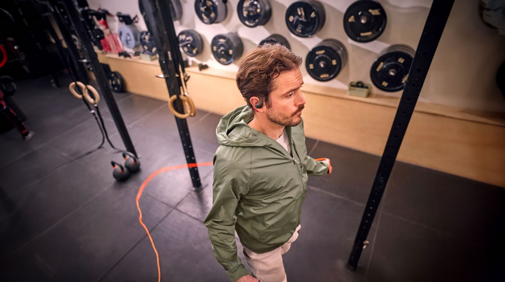 The open-ear design of these earbuds means there’s no need to play around with different-sized ear tips. Instead, comfortable ear hooks loop around your ears, and a rubberised anchor at the end of each hook gently grips under the back of your ear for extra security and a fit that won’t fail.